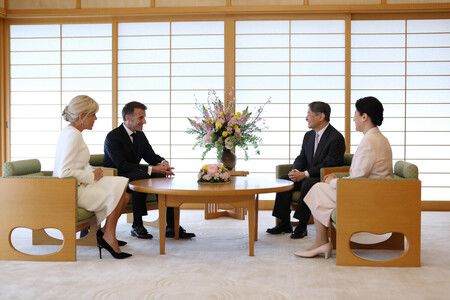Токио, 2 апреля (Jiji Press). Император Нарухито и императрица Масако встретились с президентом Франции Эммануэлем Макроном и его женой Брижит в императорском дворце в Токио.