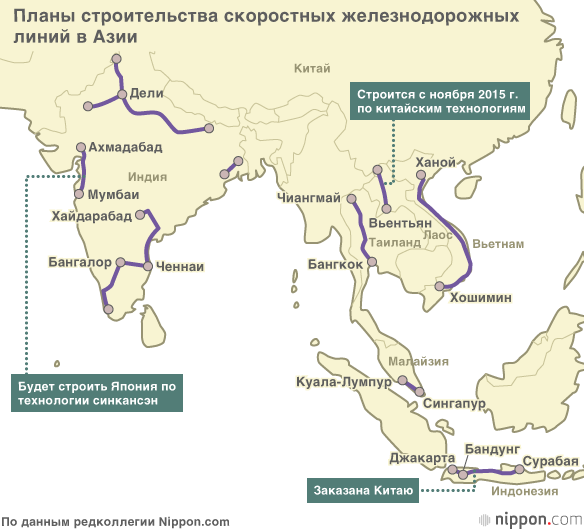 (Статья на японском языке опубликована 27 января 2016 г.)Синкансэн Китай Индонезия Индия Тайвань Малайзия Таиланд Сингапур Азиатский банк