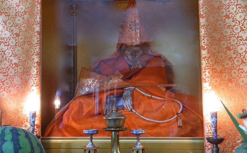 Когда открывали крышку, в большинстве случаев в могиле обнаруживали разложившийся труп. Но если всё удавалось, то труп превращался в прекрасно сохранившуюся мумию, сидящую в позе лотоса. Эти останки отправляли в храм, где их одевали в пышные облачения и почитали как будд, которые не умерли, а вошли в состояние вечной молитвы во благо всех живущих.