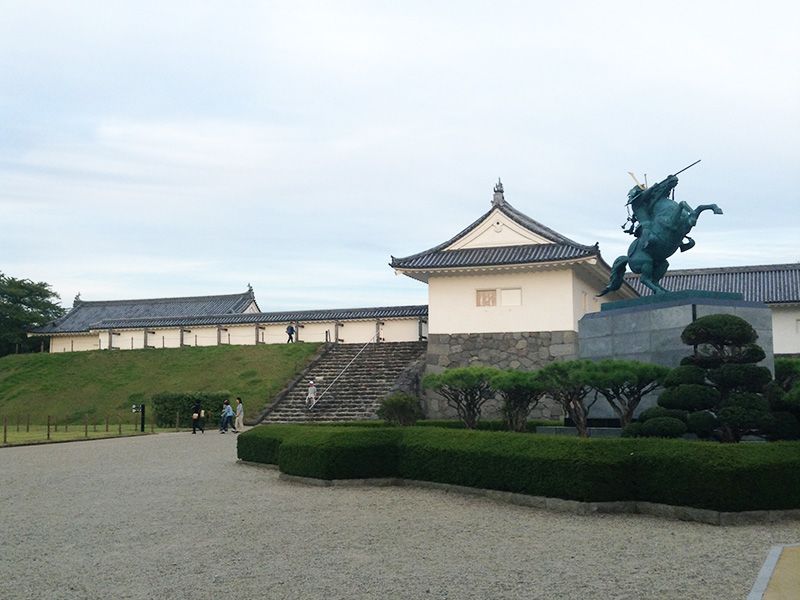 Замок Ямагата и статуя главы феодального княжества, Могами Ёсиаки