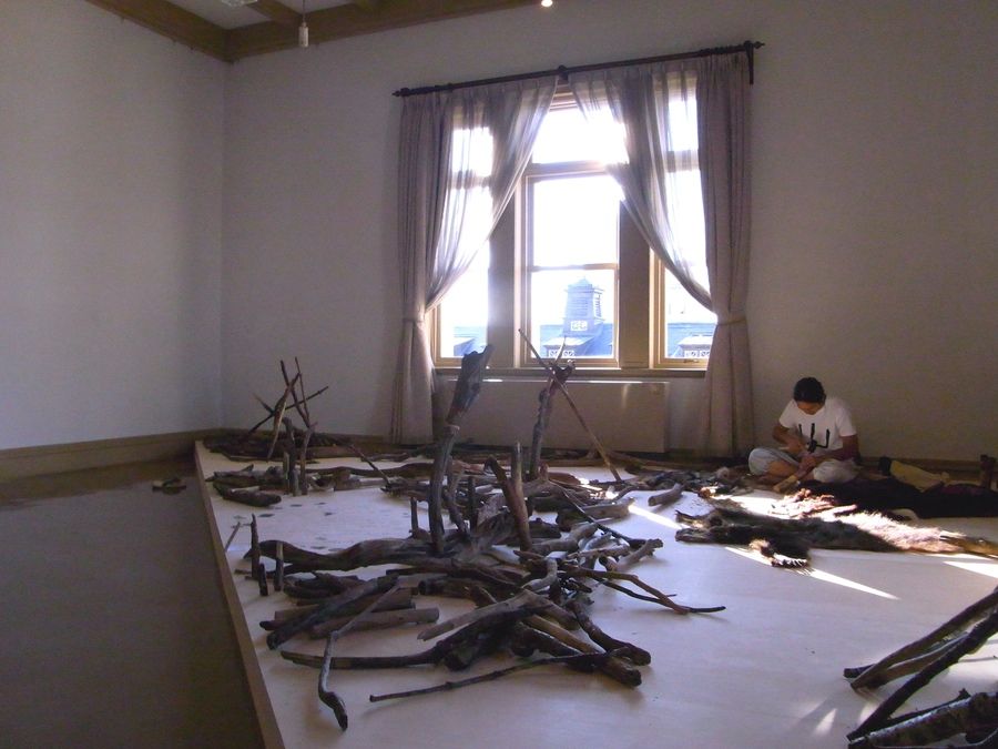 Один из художников, принимающих участие в бьеннале, особенно сильно связан с этим наследием. Это Сакамото Дайсабуро, который посетил Три святых горы Дэва в 2006 году и испытал мистический опыт. В 2009 году он решил покинуть Токио и переместиться в провинцию, став странствующим монахом ямабуси . «Я интересовался происхождением японских искусств и ремёсел, и оказалось, что все виды традиционных представлений — Кабуки, театр Но и другие — тесно связаны с ямабуси. Я был очарован этим стилем жизни и эстетическим воздействием природы и гор. Я подумал, что было бы интересно использовать это древнее наследие в собственном искусстве».