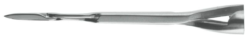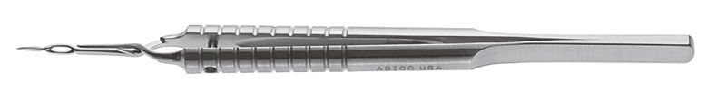 Акахоси: У этого пинцета очень острые кончики. «Как раз то, что надо», – подумал я. Когда во время операции я присоединил к пинцету ультразвуковой чип и начал вставлять его в хрусталик, пинцет вошёл как по маслу. А когда я раскрыл пинцет, ядро тут же разломилось. Под воздействием ультразвука разломленное ядро через несколько секунд было измельчено, а осколки аспирированы. До сих пор помню, как меня пробрала дрожь – «получилось!». Впоследствии я понял, что на ранних стадиях катаракты можно разламывать ядро пинцетом без применения ультразвука.