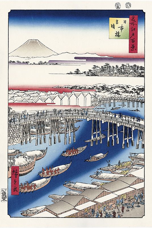 Утагава Хиросигэ «Нихомбаси в снегу» из серии «Сто видов Эдо»