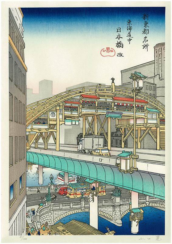 «Новый мост Нихомбаси на дороге Токайдо» из серии «Новые виды Восточной столицы». Полихромная гравюра по эскизу Ямагути Акиры© Ямагути Акира, Галерея Мидзима, Институт исследований японской гравюры Адати, 2012