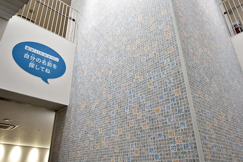 Центральную часть музея занимает «Башня 50 000 кандзи» – столб высотой 7,8 м, на котором нанесены все кандзи из универсального словаря Морохаси Тэцудзи «Дай Кан-Ва дзитэн». Они напечатаны разными цветами и имеют различный размер в зависимости от частоты их употребления. Самые заметные кандзи – те, которые изучаются японскими учащимися в школе. Благодаря башне люди, которые приходят в ужас от осознания количества изучаемых иероглифов, могут понять, что им еще повезло – им не придется заучивать десятки тысяч символов.