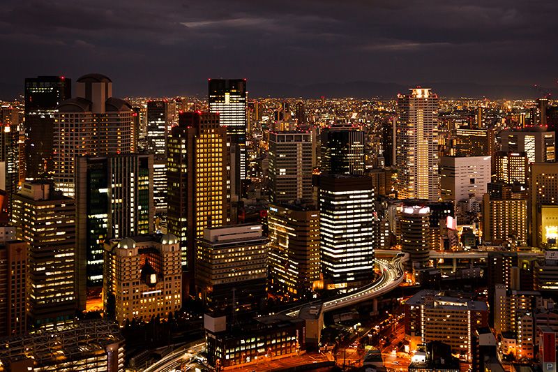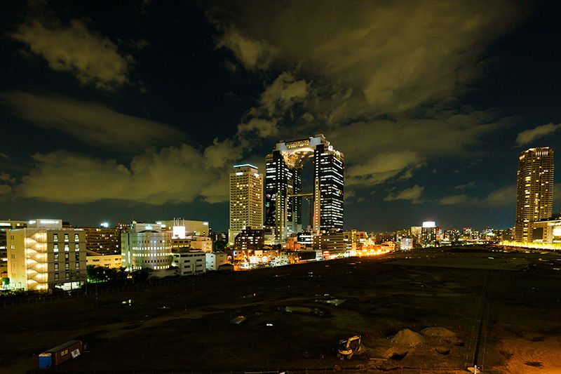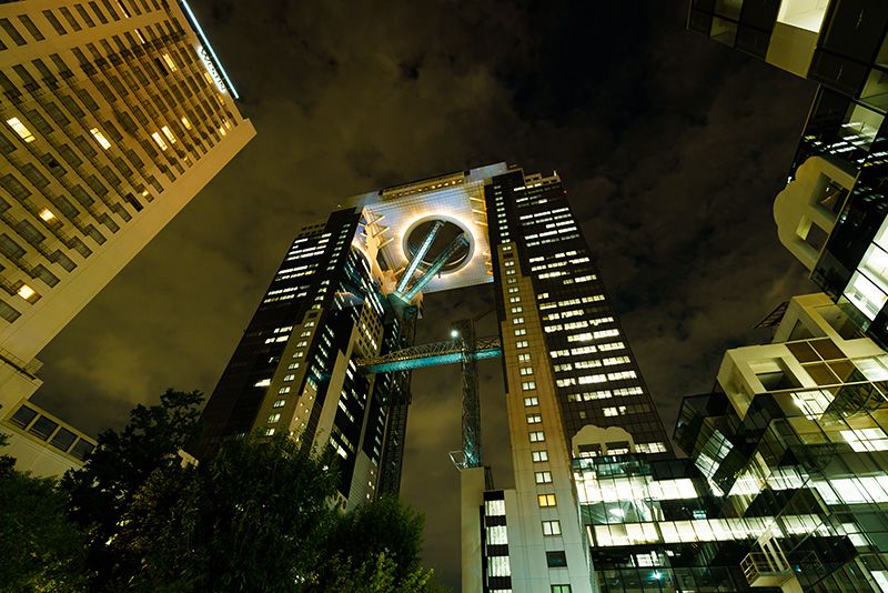 Ночная подсветка «Небесного здания Умэда» придаёт ему футуристический вид