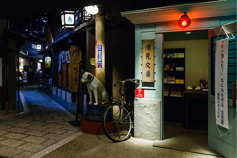 Для любителей вкусно поесть, желающих оценить местную кухню, в подземном этаже устроен квартал ресторанов в стиле ретро – «Улочка любования водопадом» (Такими кодзи). Там воспроизведена атмосфера эпохи Сёва (1926-1989) и это место пользуется большим успехом среди иностранных туристов