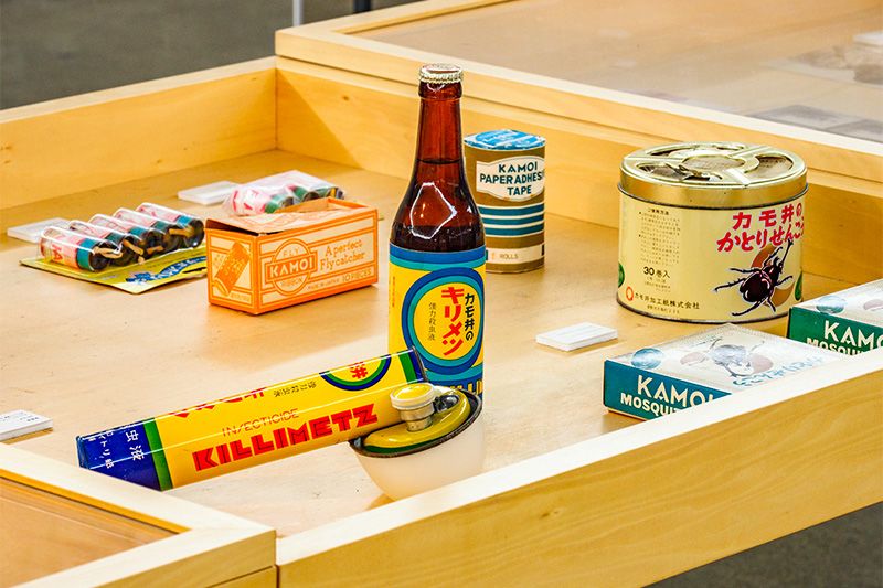 Лента для борьбы с вредителями и другие продукты, выпускавшиеся компанией на заре ее деятельности, выставленные в головном офисе «Камои»