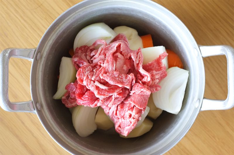 Название блюда никудзяга состоит из компонентов нику – мясо и дзягаимо – картофель, то есть это картошка с мясом по-японски, обычная домашняя еда в Японии. Когда-то даже говорили, что девушка, умеющая хорошо готовить никудзяга, будет пользоваться успехом. Для него подойдёт говядина или свинина. За рубежом не везде продаётся тонко нарезанное мясо, но можно взять кусок для стейка и нарезать его тонкими пластинами.