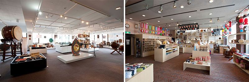 «Миямото Уносуке Шотен»: Дома барабана на 3-м этаже ( фото слева); бутик на первом этаже (фото справа)/ Адрес : 2-1-1 Нити-Асакуза, Тайто-ки, Токио/ Тел. : +81 3 3842 5622 / открыт : среда- воскресенье, с 10.00 до 17.00. http://www.miyamoto-unosuke.co.jp/english/taiko.htмл