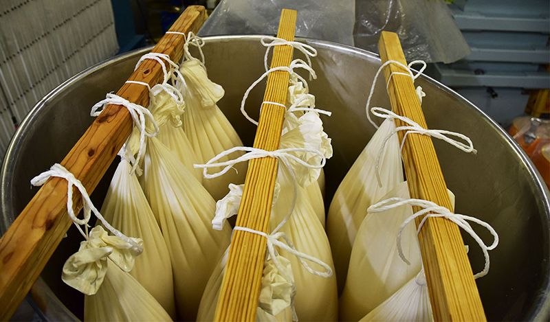 Чтобы предотвратить окисление, в цехе для отжима установлено холодильное оборудование. На фото – специальные мешки с затором (массой мороми). Из собираемых капель делают сакэ элитных сортов