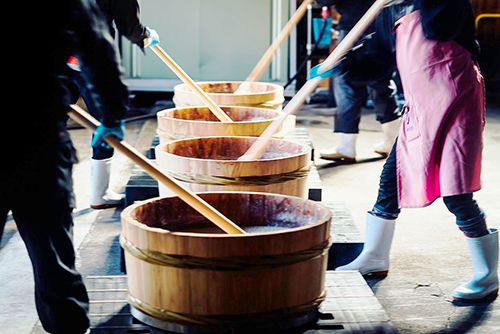 Процесс мотосури – растирание основы в мелкой бочке(фото предоставлено заводом «Сэнкин»)