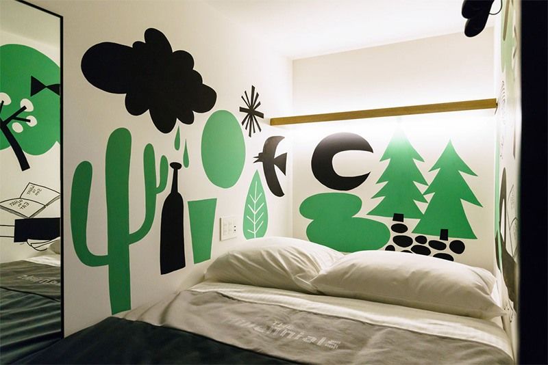 У Millennials Shibuya иная атмосфера, не похожая на отель в Киото: некоторые капсулы представляют собой «арт-пространства», украшенные работами 20 популярных художников.