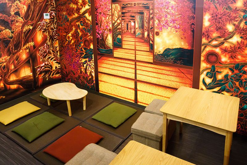«Изначально мы пригласили для оформления стен десять студентов художественного колледжа, – говорит Мацунага. – Затем повторили процедуру ровно через год после открытия. Возможно, это выглядит слишком броско, но людям нравится. Многие наши гости увлеклись темой самураев и ниндзя благодаря таким играм, как Nobunaga’s Ambition или Tōken Ranbu (Танец мечей). Они разбираются в именах самураев, а также в клинках и доспехах».